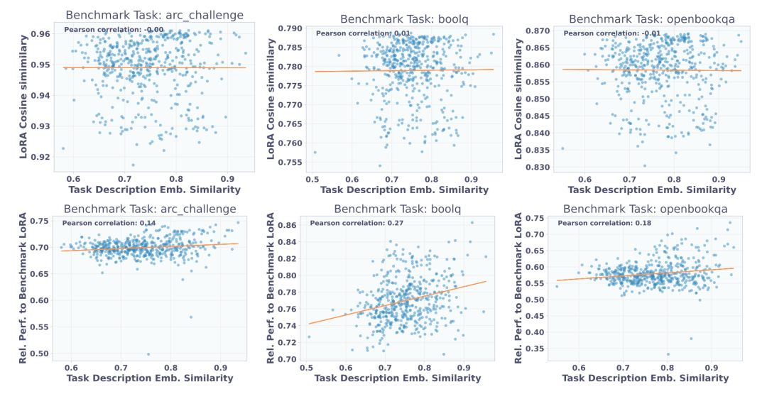 需要注意的是,系统高度依赖对齐且高质量的任务描述,输入未对齐描述(如随机字符串)会导致生成的 LoRA 适配器性能大幅衰减。