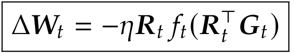 论文提出:给定一般的基座优化器 f,我们可以近似地求解旋转 R,使旋转更新下的训练损失下降速率得以提升。于是,我们推导出 ARO 的更新规则: