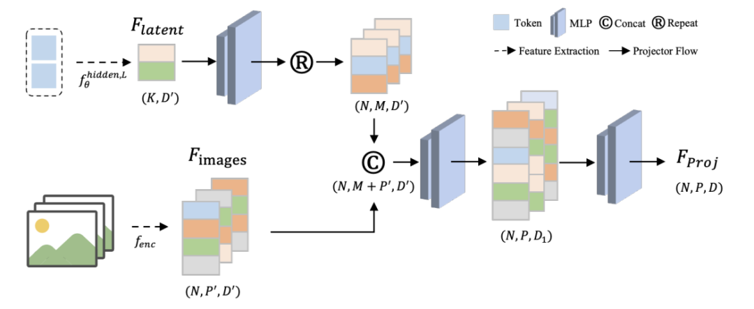 其中,projector 基于堆叠 6 层 MLP 实现三次特征维度映射,具体框图如下: