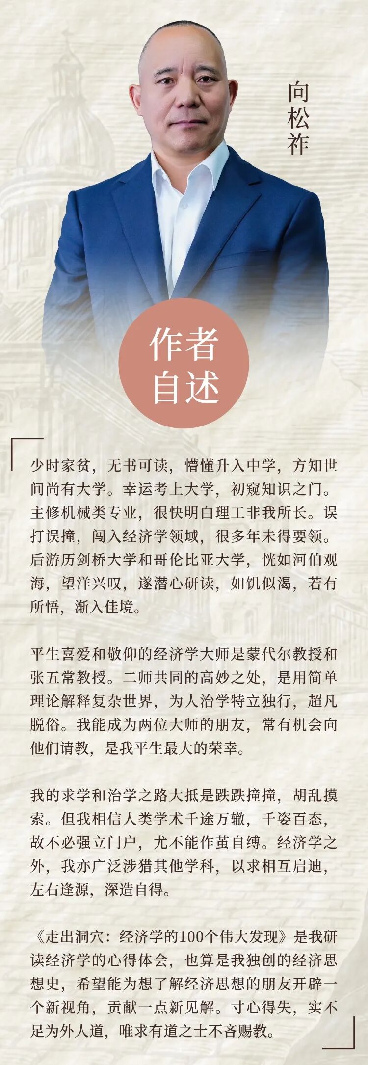 今年3月,著名经济学家向松祚的全新力作《走出洞穴:经济学的 100 个伟大发现》正式上市!这一次,让我们跟着经济学的智慧,走出认知的 “洞穴”,看清生活与世界的经济逻辑!