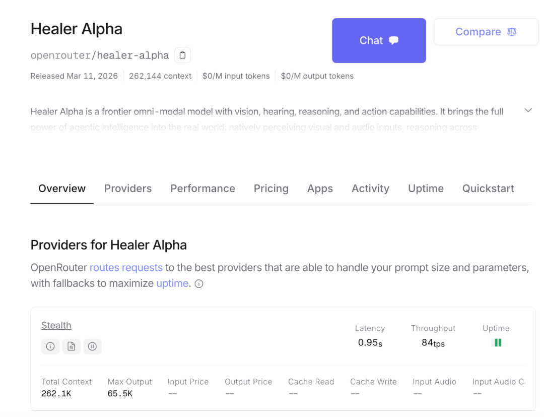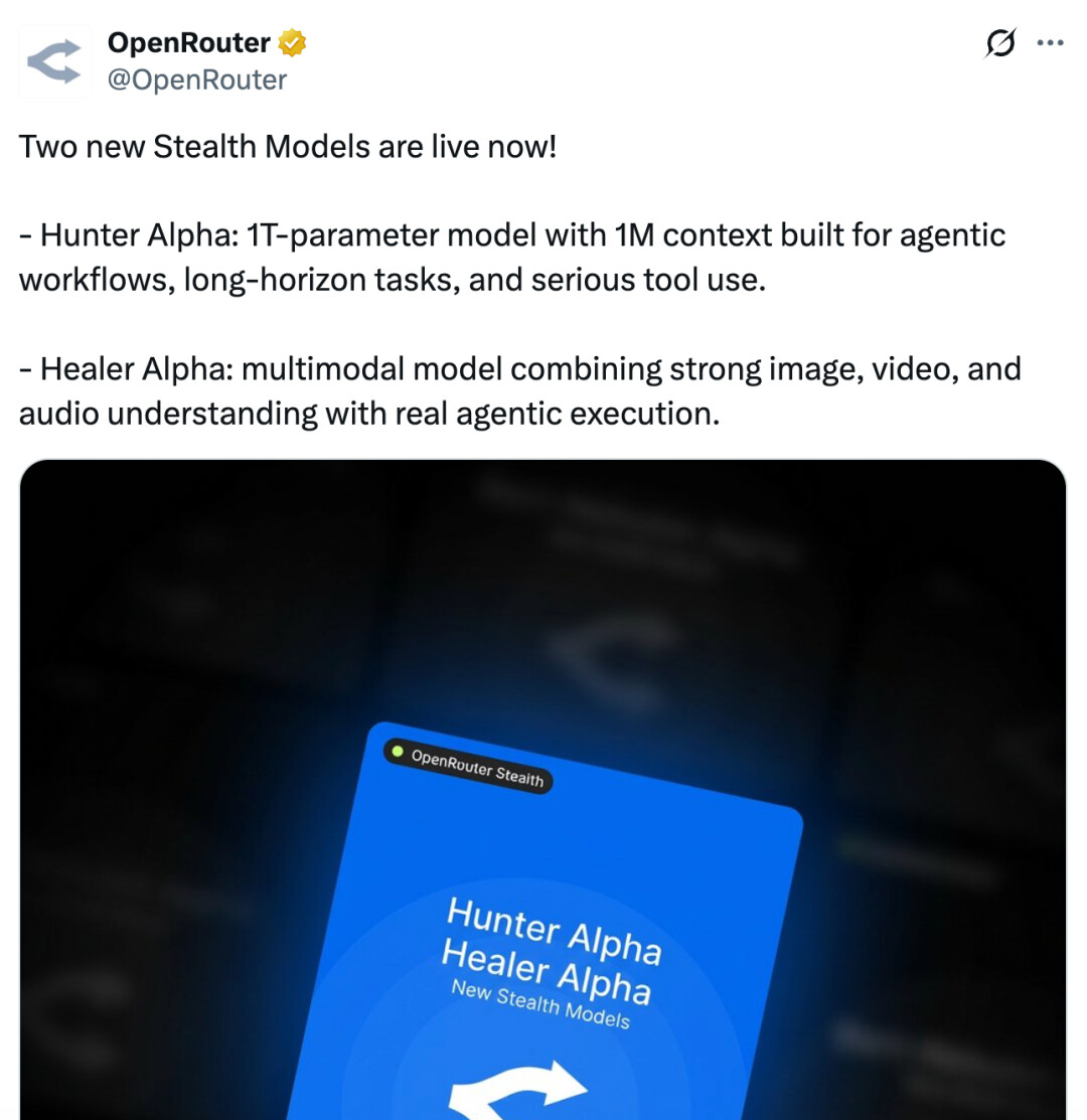 而就在今天早上,全球知名大模型聚合平台 OpenRouter 突然上新了两个神秘模型,分别是「Hunter Alpha」和「Healer Alpha」。