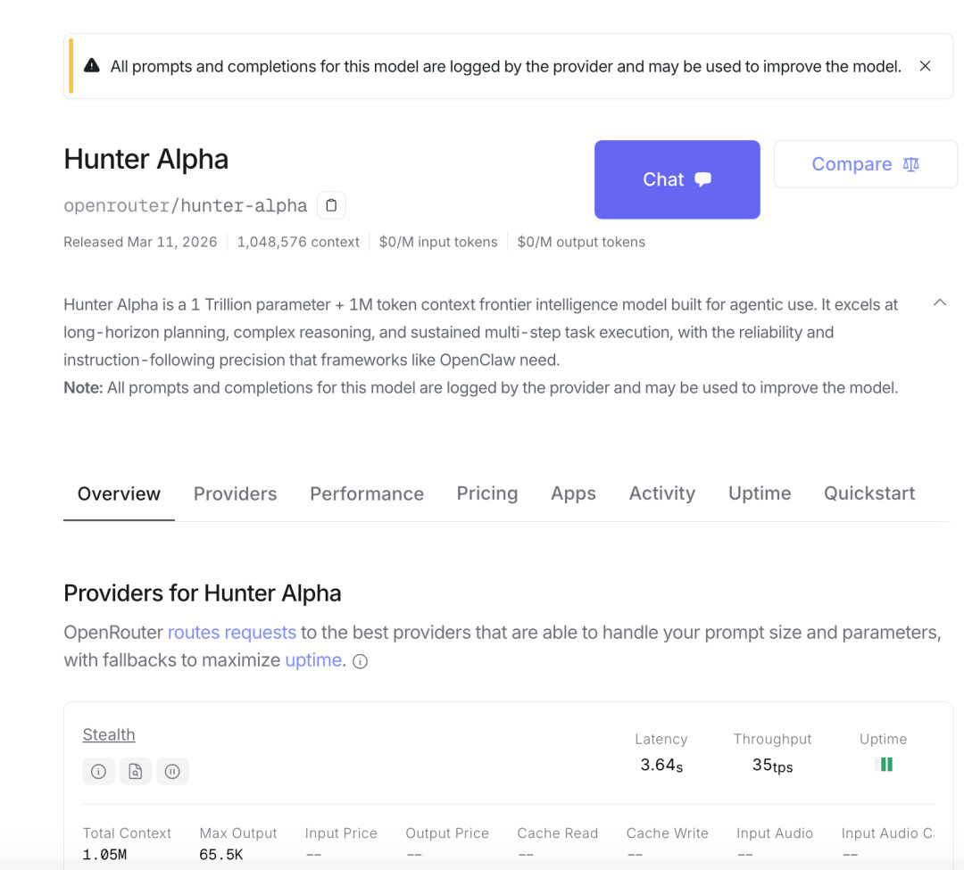 还有海外博主通过 OpenRouter 平台挖掘到 Hunter Alpha 来自中国的信息: