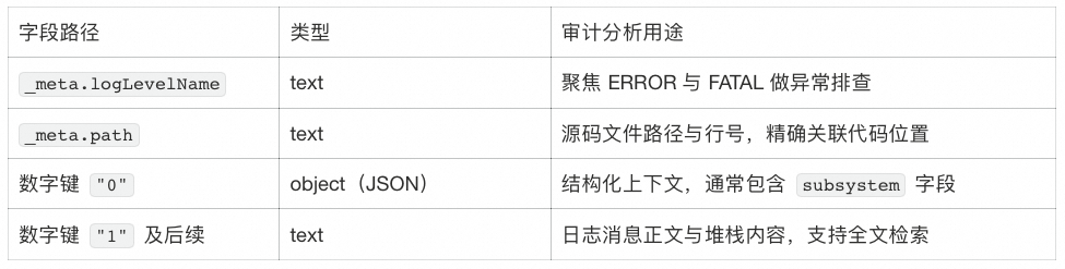 _meta.logLevelName:日志级别(TRACE/DEBUG/INFO/WARN/ERROR/FATAL); -