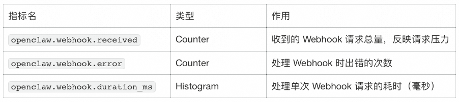 Webhook 是 OpenClaw 与外部系统交互的重要入口。监控收到的请求量、错误次数和处理耗时,可及时发现外部调用异常,保障对接稳定。