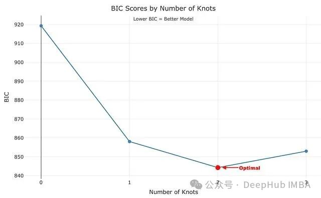 Optimal model: 2 knot(s) with BIC = 844.26