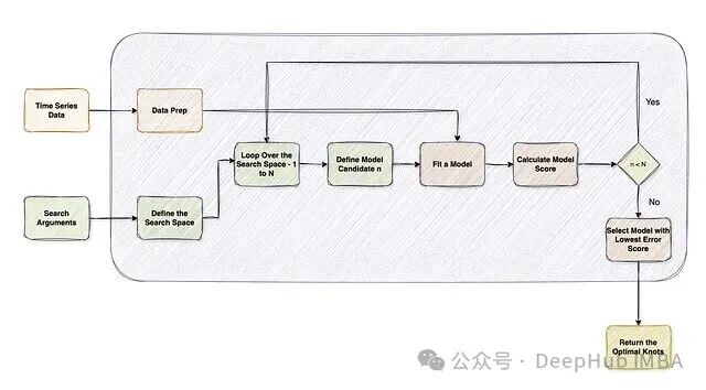 在分段回归中,待搜索的参数就是节点(knot)的数量和位置,每个节点对应一个候选变化点。整体流程如下: