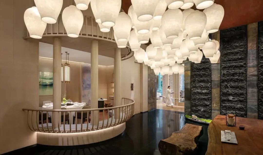 文华扒房设计也非常有辨识度,灵感源自戏剧艺术和豪华列车,最引人注目的是其标志性的黄铜管设计。