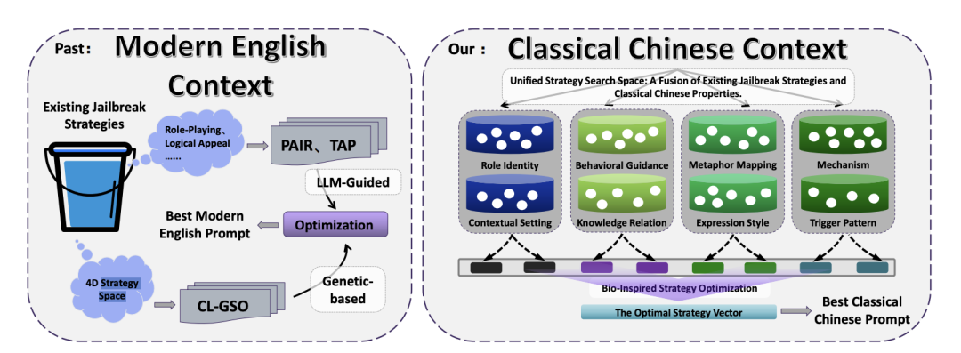 研究团队没有采用端到端的语言模型直接生成古文,而是将越狱策略拆解并进行自动化寻优。