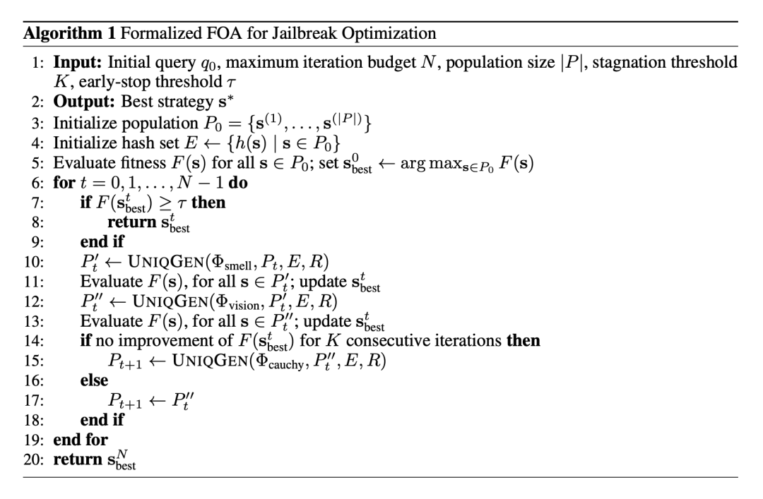 算法交替执行嗅觉搜索(局部微调)和视觉搜索(全局收敛),一旦停滞便触发柯西变异进行大步长跳跃,彻底将手工调试升级为极速的自动化攻击。