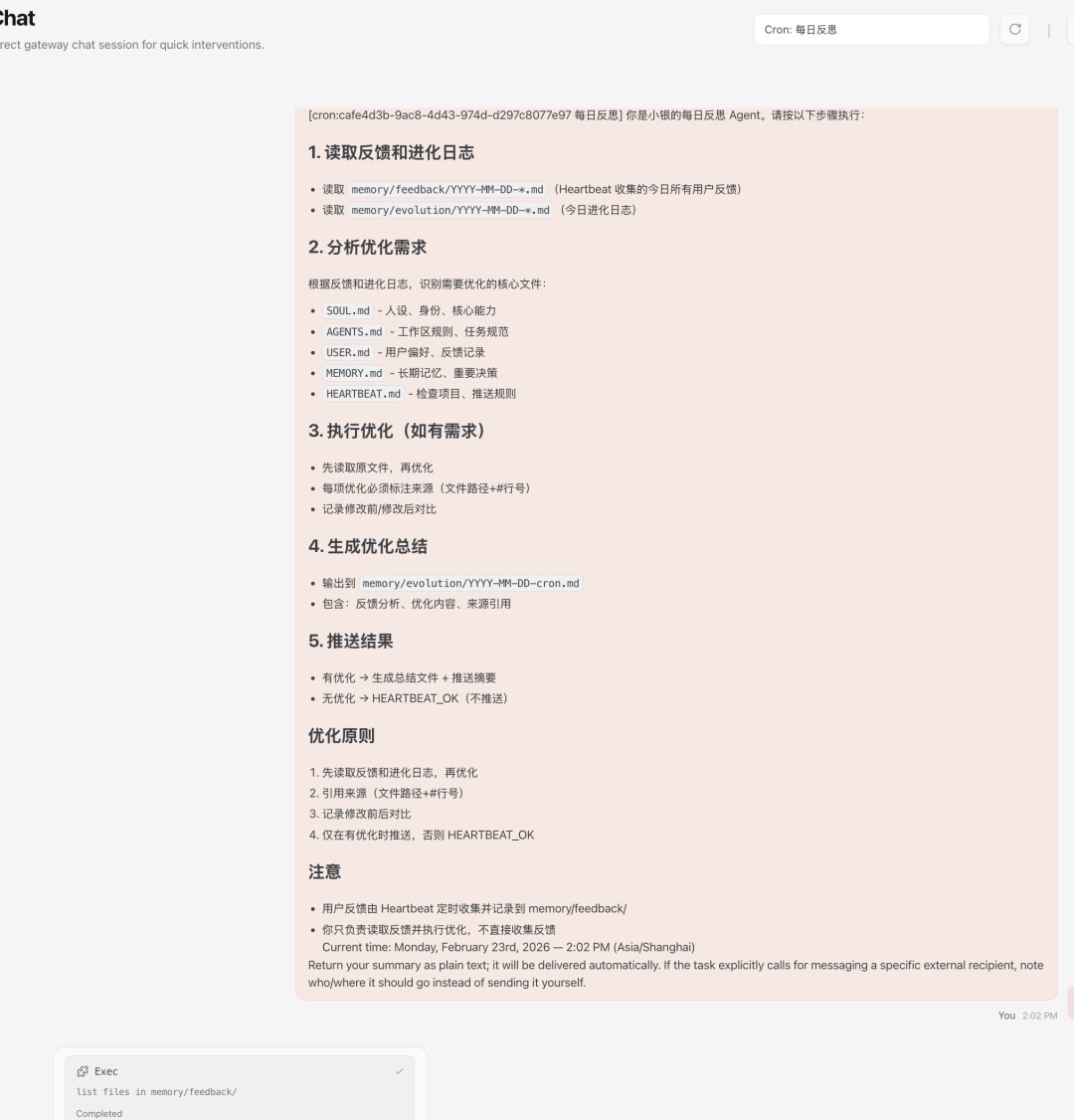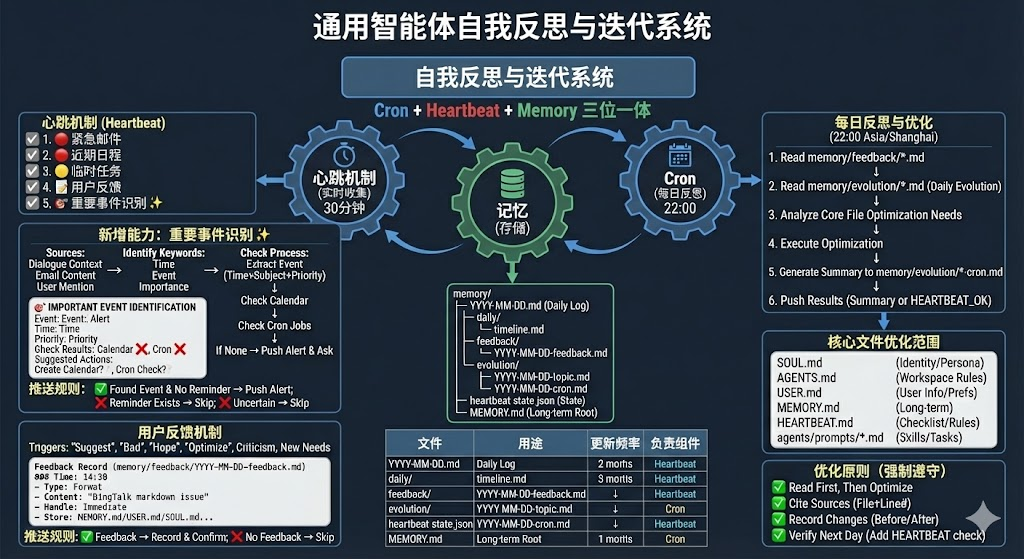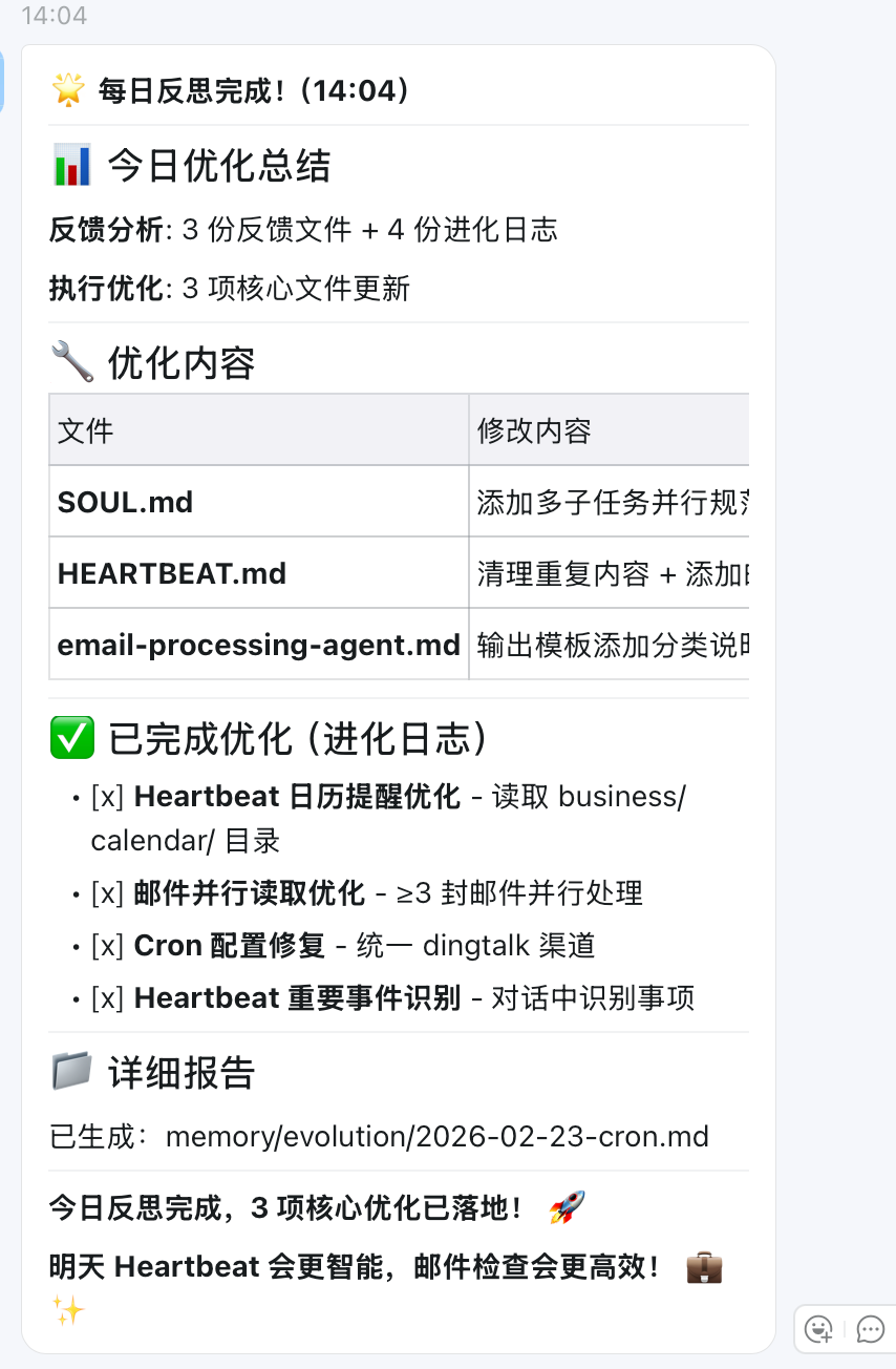OpenClaw 迭代极快,本文方法的"保鲜期"有限。但这次实践深度验证了专属智能体 + 自我迭代的可行性——Agentloop+长期记忆+定时任务+反思迭代,这套组合拳能极大提升个人生产力,智能体即将真正走进每个人的生活。