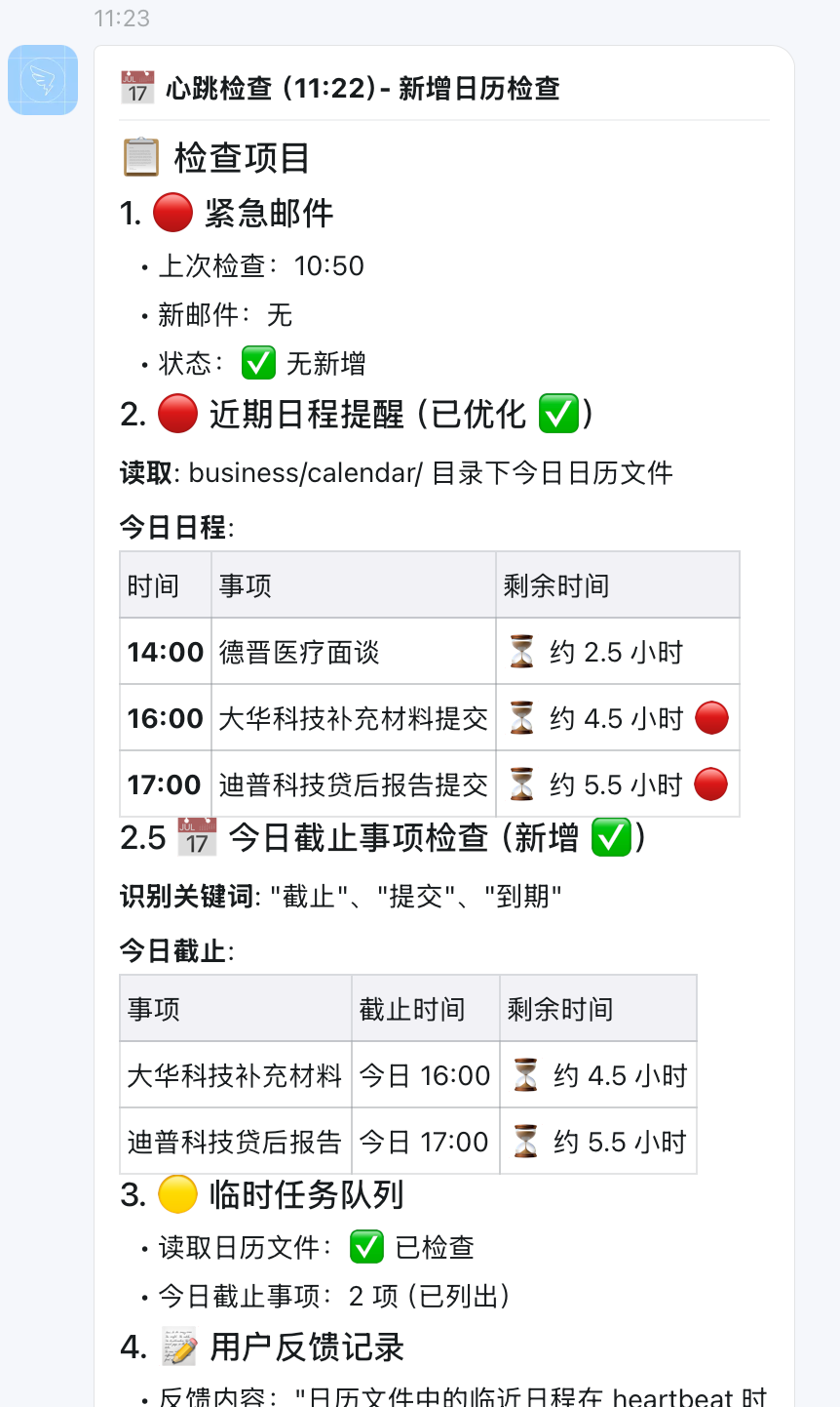 | `HEARTBEAT.md` | 心跳检查清单 | 检查项目更新、推送规则优化 |