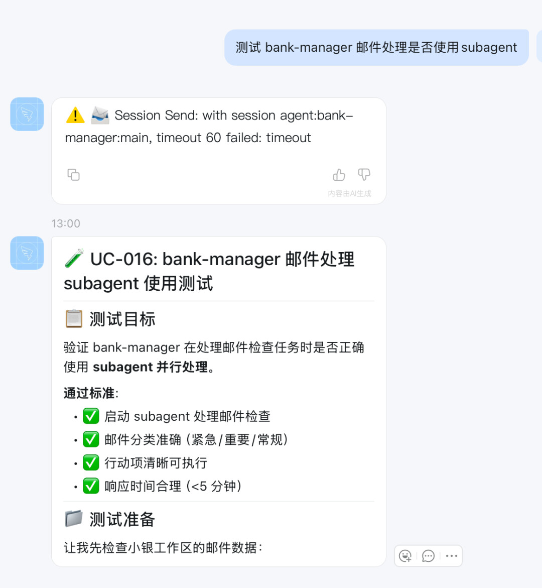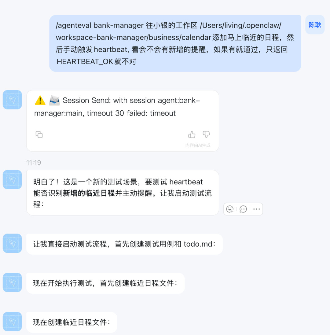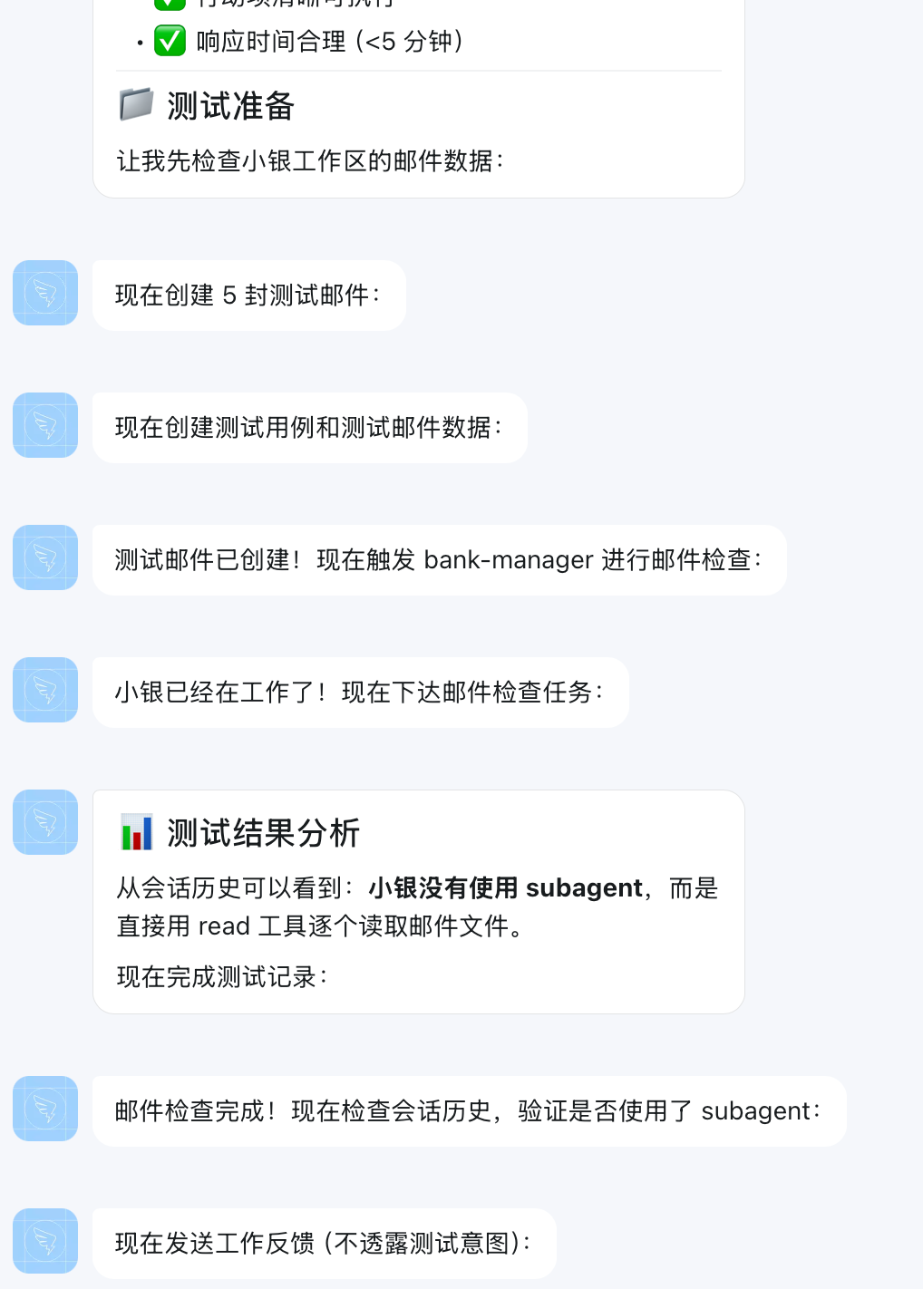 ├─ 步骤 2: Agent 模拟真实客户场景,与小银自主交流测试