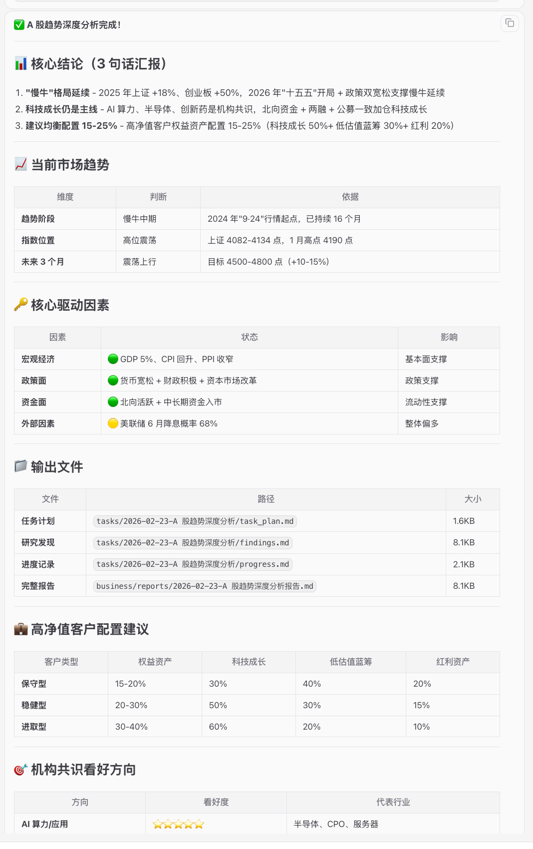 - **实时推送**: 发现重大风险立即推送(如行业政策突变、客户财报暴雷)