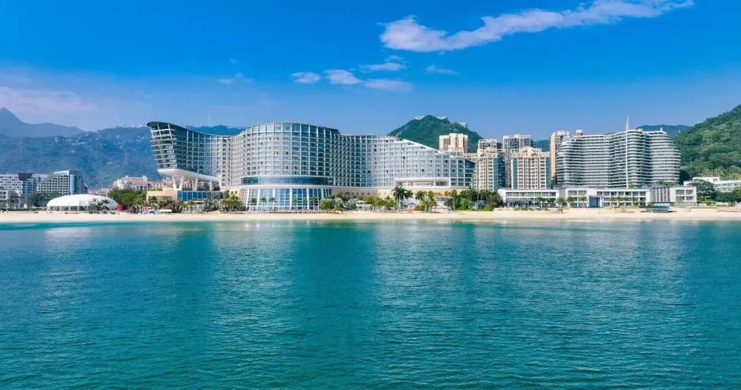 酒店坐落在深圳东部大梅沙海滨,面朝波澜壮阔的南海,三面环梧桐山,迈出酒店即至绵延的金色沙滩。