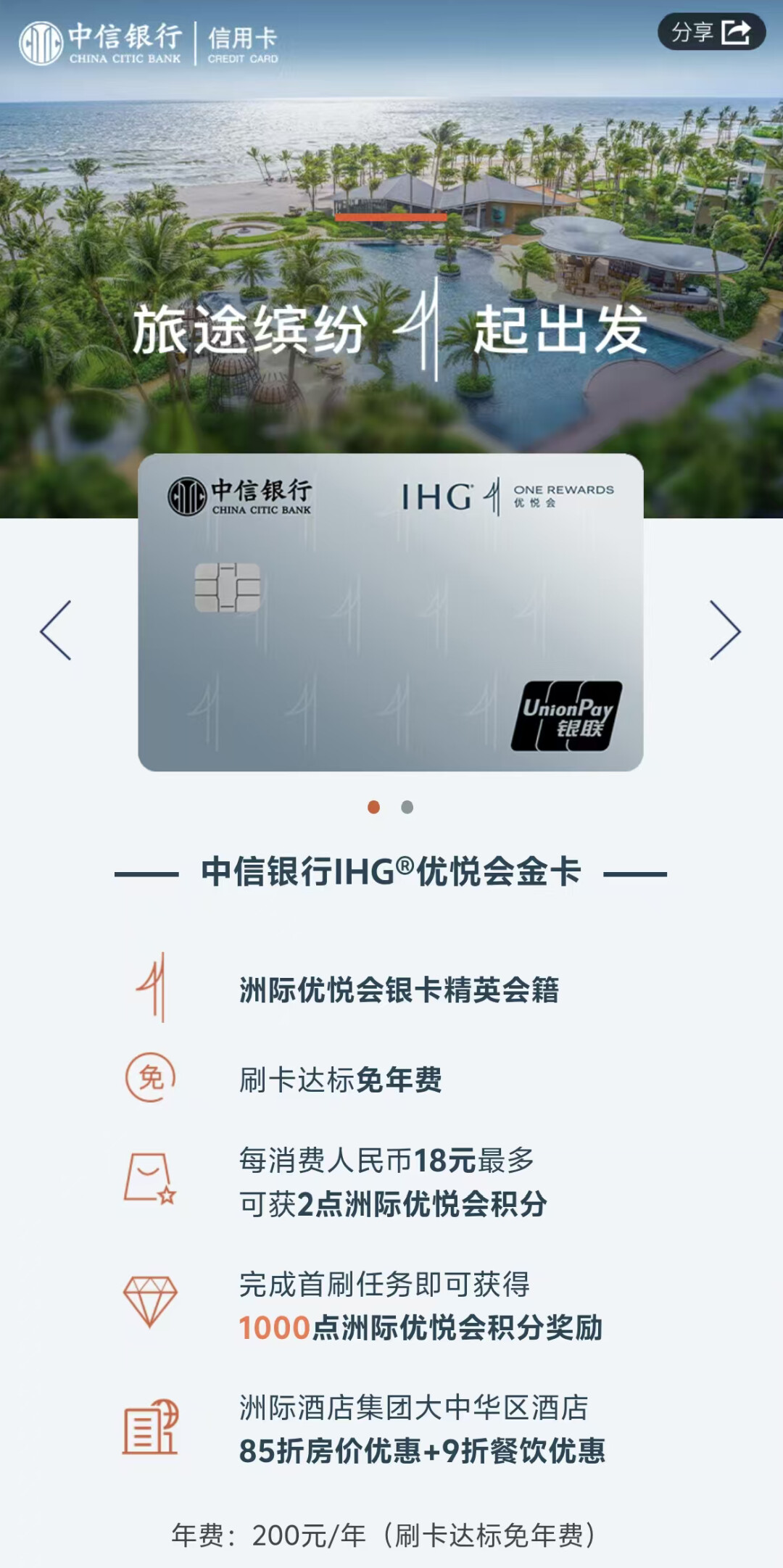 先说金卡,虽然有200元年费,但是可以轻松刷免。老玩家都知道,中信金卡等级的卡片,是可以主动找客服申请有效期内免年费的,帅帅自己的老IHG金卡就是如此。不光IHG联名卡,其它金卡级别的卡片也都可以申请。