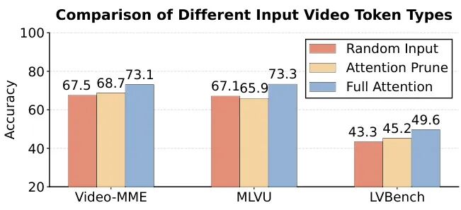 全局语义相关性评分:计算视觉Token与文本查询的跨模态注意力权重,优先保留和用户需求、视频核心内容强相关的Token,杜绝无关信息抢占算力
