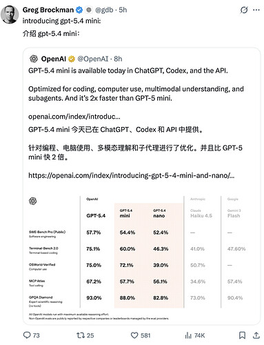 凌晨,GPT-5.4 mini和nano版本直接上线。