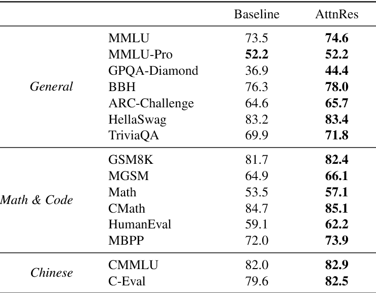 AttnRes:兼顾稳定性 + 复杂推理,长上下文 、逻辑题提升碾压