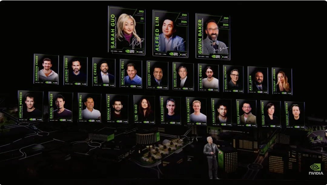 为了进一步推动这一生态,NVIDIA 在大会上宣布成立 Nemotron Coalition。该联盟将与多家技术公司合作,共同推进 Nemotron 系列模型的发展。参与合作的公司包括图像技术公司 Black Forest Labs、AI 编程平台 Cursor、智能体开发框架 LangChain、欧洲 AI 公司 Mistral AI、AI 搜索平台 Perplexity AI、印度 AI 公司 Sarvam AI 以及 Thinking Machines Lab 等。黄仁勋表示,随着越来越多企业加入合作,AI 模型将能够覆盖从语言到生物、从物理到自动驾驶等广泛领域。