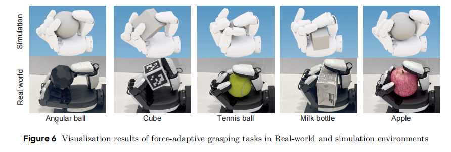Figure 7 :对训练中未见过的不规则形状物体进行力自适应抓取