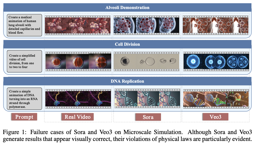 一句话总结:AI 生成的微观视频 “像真的”,但机制全错了。 它们只学习了宏观视觉统计,未学习微观物理规律。