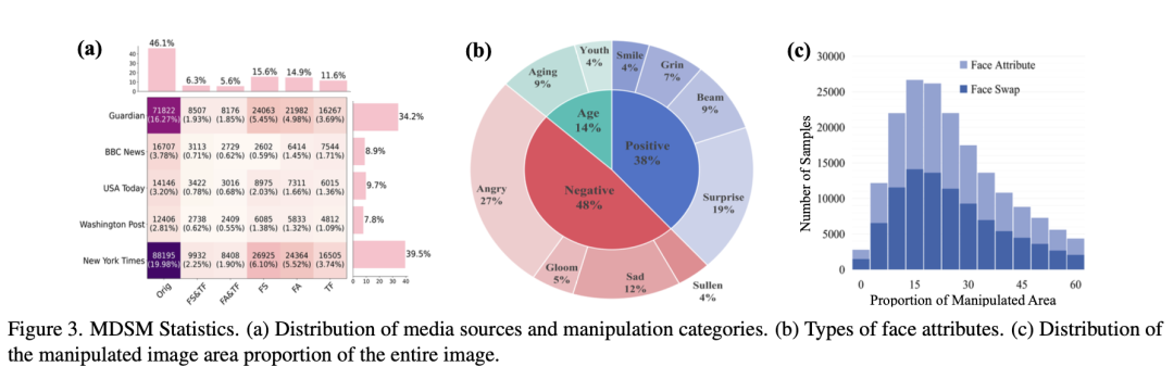 规模空前:包含超 44.1 万高质量图文对,源数据覆盖《卫报》《纽约时报》等五大主流媒体,是目前多模态伪造检测领域规模最大的基准数据集。