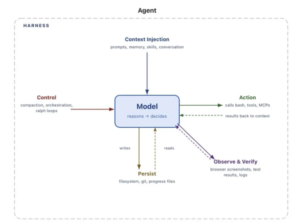 所谓 Harness,是指:“即所有不属于模型本身的代码、配置以及执行逻辑。”