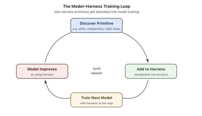 这形成了一个反馈循环:先在 Harness 中发现有效模式,再将其纳入训练,从而进一步增强模型能力。
