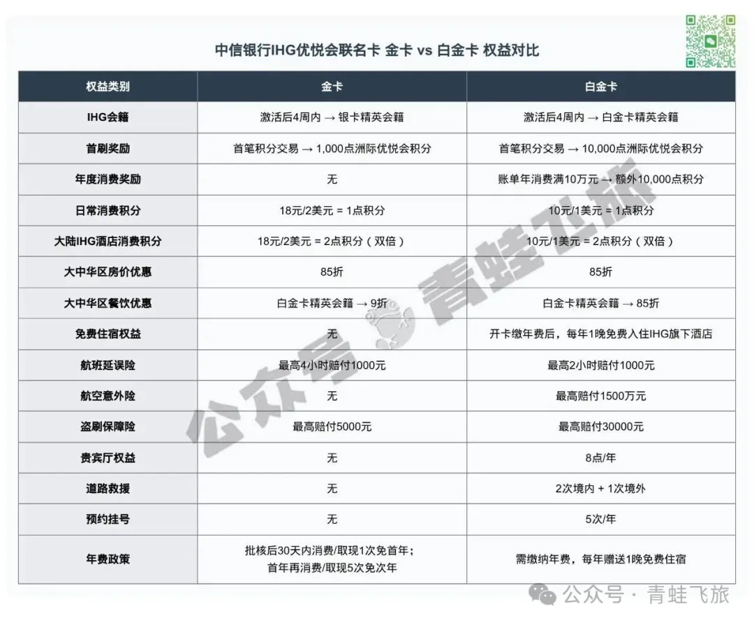 内容是这样子的:中信将在今年三月发行发行IHG联名卡,白金卡消费积分比例10/1,刚性年费¥2000,自动匹配白金会员,送一晚IHG旗下住宿。金卡18/1,年费应该刷免,匹配银卡会员