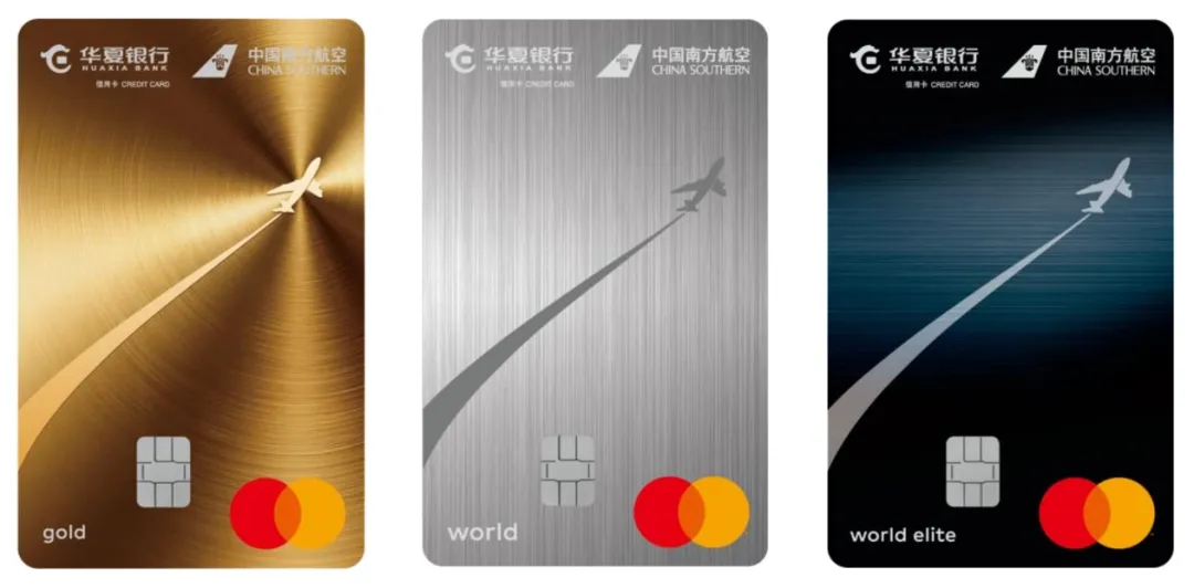 华夏南航联名卡一共三个等级:金卡、世界卡和超白金卡。从卡面设计来看,金色、银灰、深蓝三种配色还是挺有辨识度的,尤其是超白金卡对应的是万事达世界之极卡,这个等级在国内联名卡里并不多见。