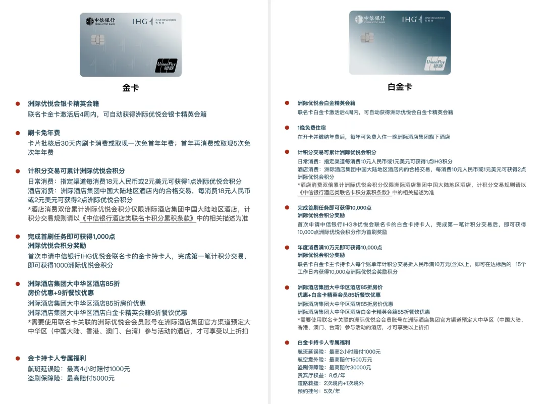 * **联名卡:** 中信IHG联名卡首刷赠送积分,消费可累积积分,配合活动更划算。