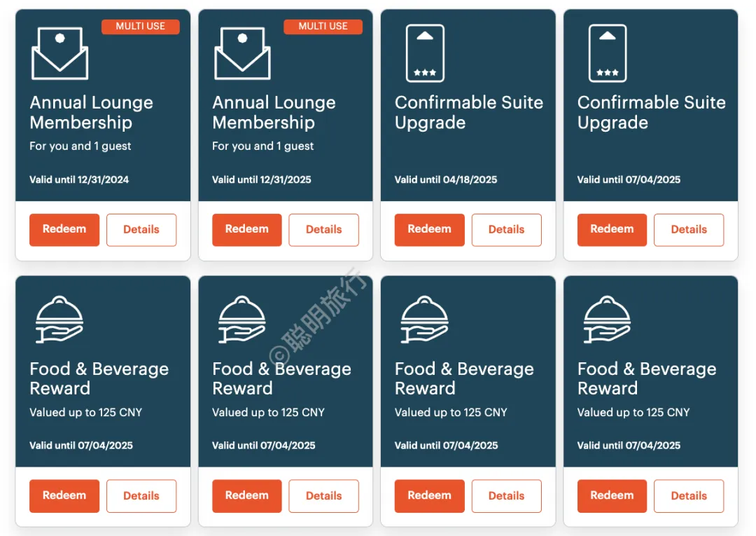 其他的奖励,根据个人偏好选择套房券、餐饮券和积分。