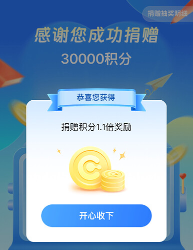 返还1.3倍我觉得还行,但前提是我得有很多积分才行。如果只有几万积分,可能就换点实用的东西算了。如果有很多积分,捐个几万参与一下也无妨,相当于白送的积分,中了就赚了,没中也没啥损失。