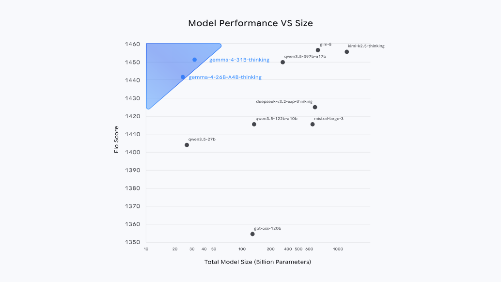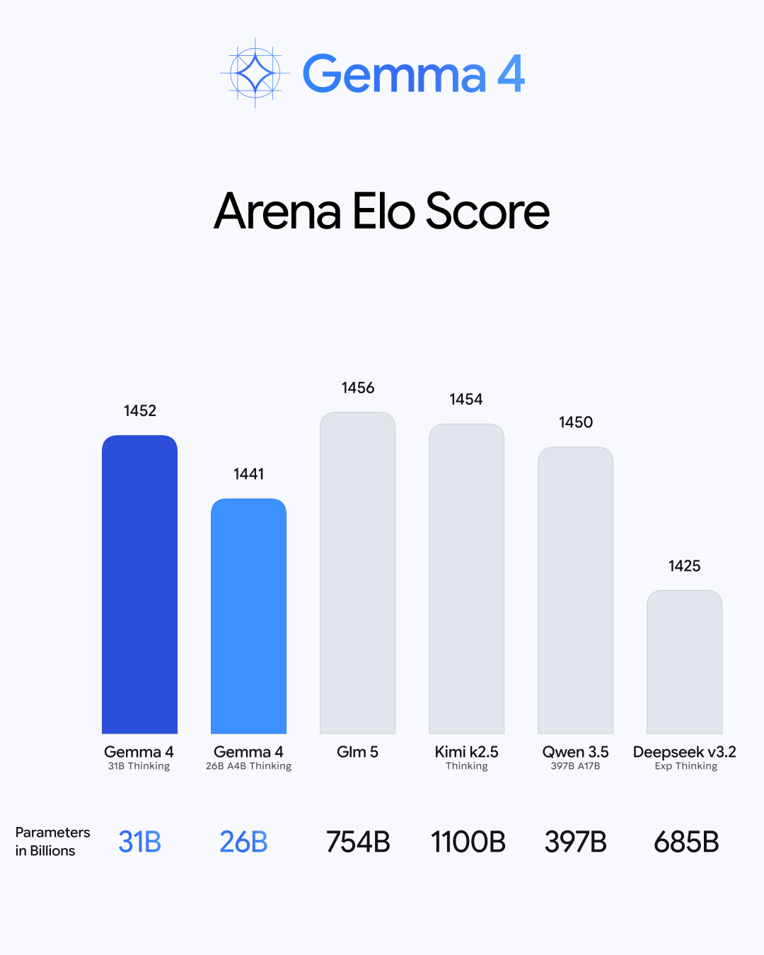谷歌表示,Gemma 4 在部分基准测试中表现优于参数大 20 倍的模型。