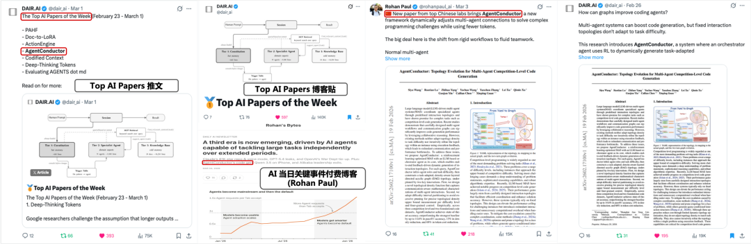 图 2.AgentConductor 得到 DAIR.AI 与 Rohan Paul 等账号推荐