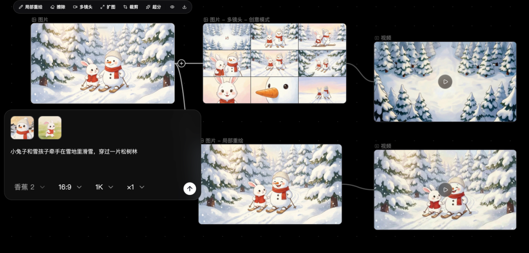 更重要的是,在生成结果有问题时,我可以随时改。哪怕后面已经走到了生成视频的阶段,想改分镜构图也是一句话的事儿,不用切换窗口,也不用换其他产品。这种想改哪儿改哪儿、想什么时候改就什么时候改的自由度非常贴合创作过程的非线性特点,用起来非常顺手。