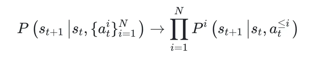 这种顺序式分解将复杂的多机器人动力学转化为一系列条件预测问题,从而显著降低了建模难度。