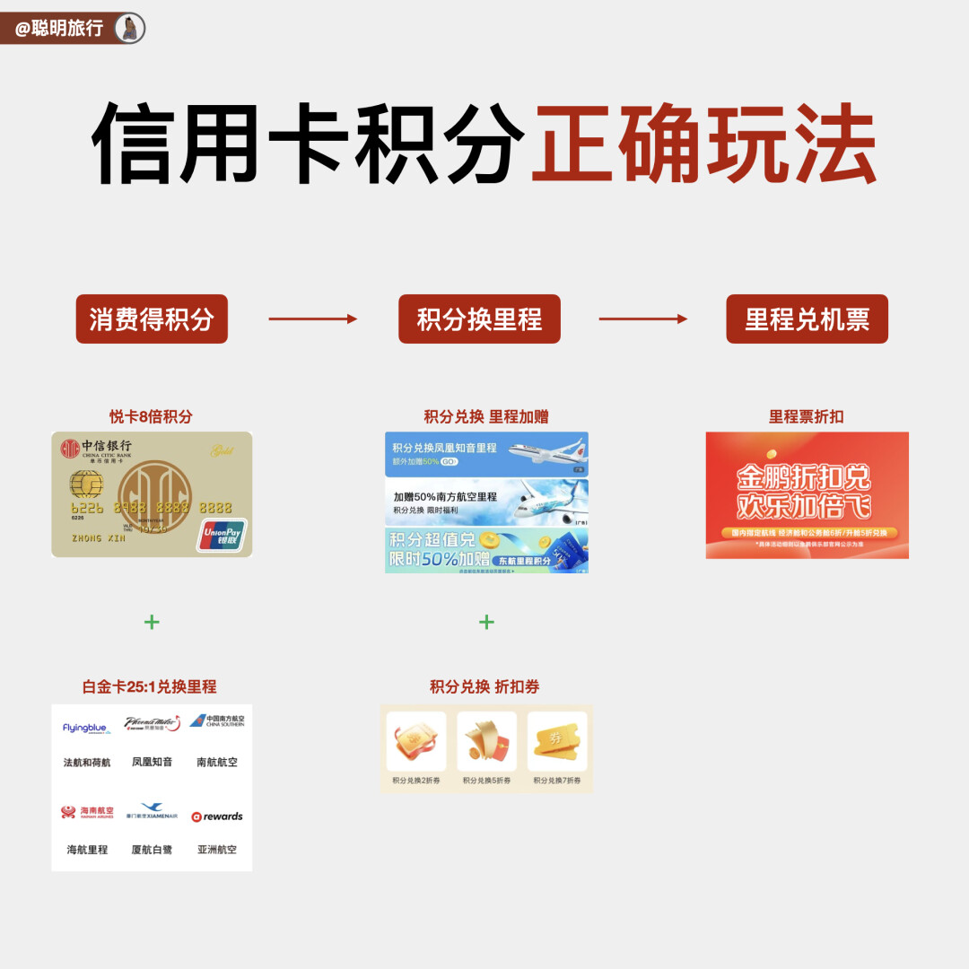 朋友们,想象一下,先以4:1的比例把信用卡积分兑换航司里程,再以6折优惠把里程换成机票,信用卡消费的回报率高达30%,这套组合拳还有对手吗?
