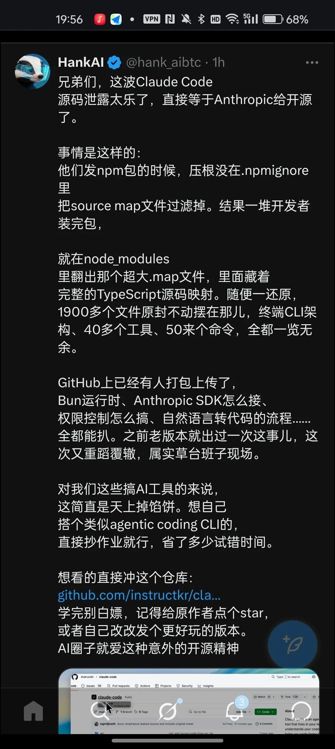消息一经曝光,GitHub上迅速有人将泄露的源码打包上传,短短时间内便引发全球开发者疯传。硅谷一众科技巨头、AI从业者彻底看傻,原本封闭的AI编程赛道,似乎一夜之间变成了人人可参与的“公开赛场”。