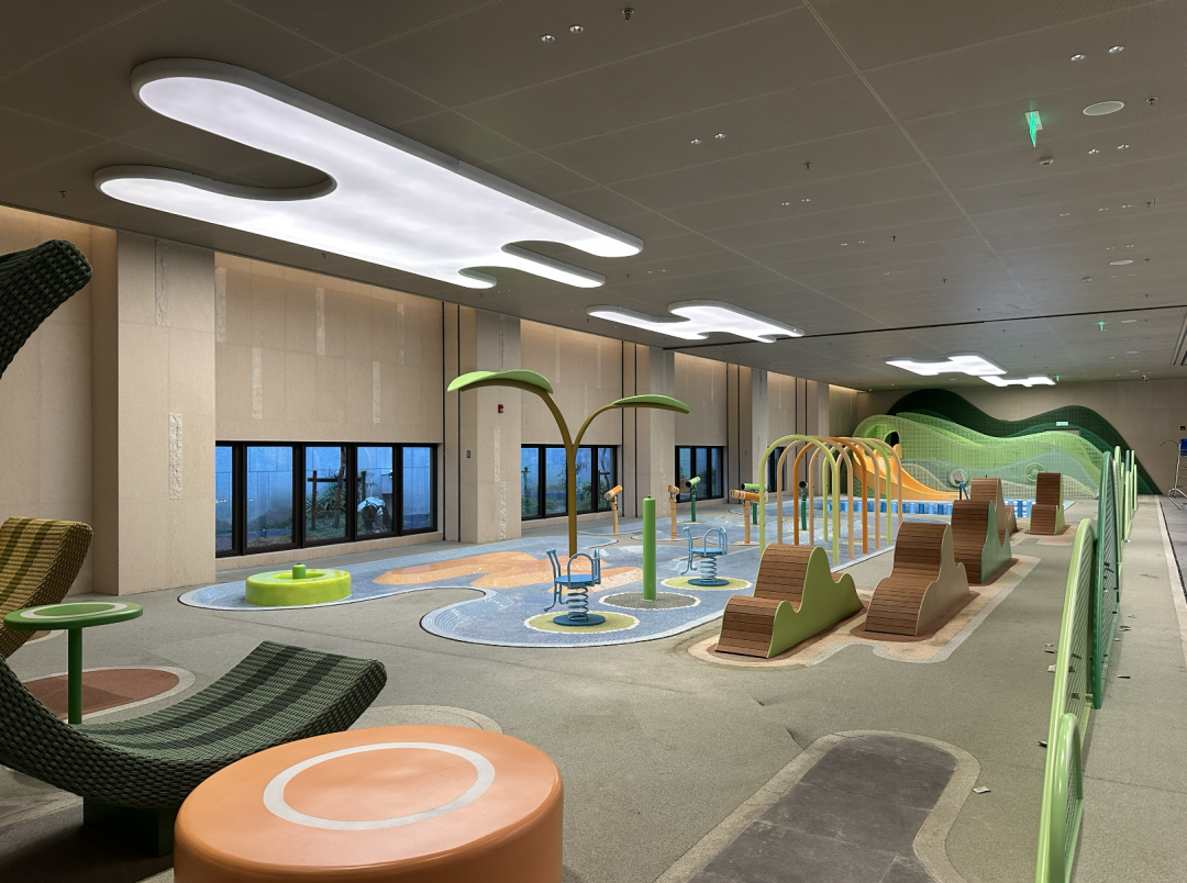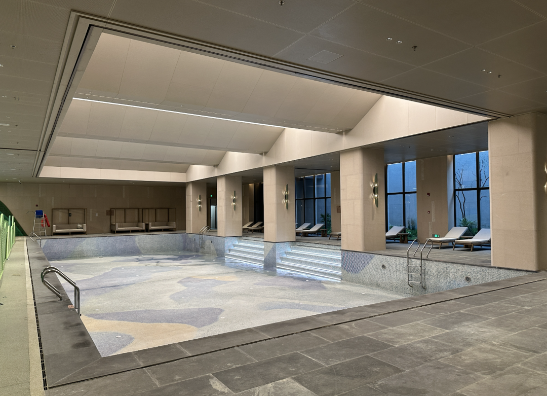 室内泳池和迷你水乐园自然采光,虽然暂时没开放,我参观了一圈,包括更衣室在内,整体硬件和质感一流。