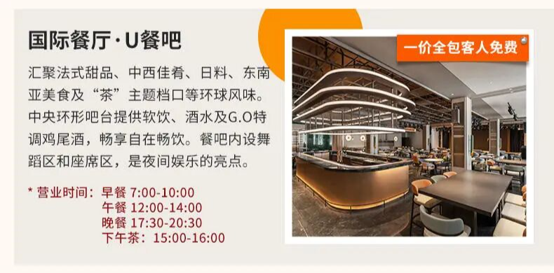 餐饮是很多人关注 Club Med 的重头戏,尤其是一价全包客人,吃好玩好喝好这也是度假村的传统强项,酒店开设两间餐厅,全日制餐厅U餐吧和中餐厅雅翠轩。