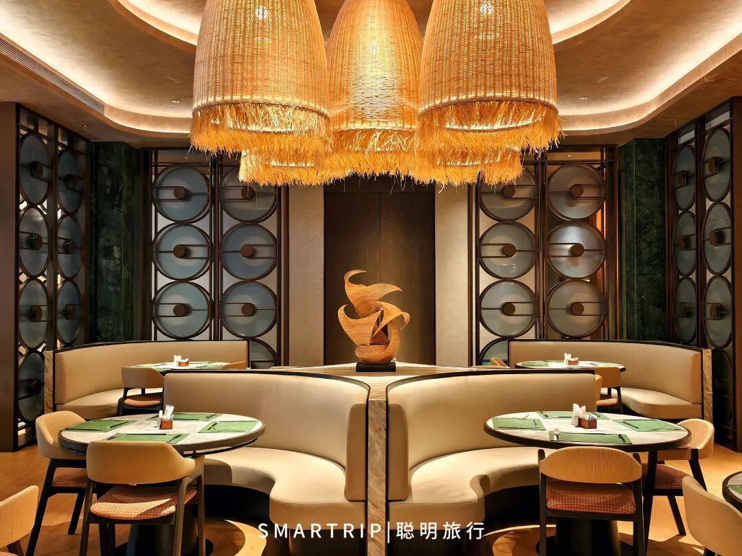 进入大堂,很明显的感受是酒店的设计在线和奢华感拉满,西湖龙井茶元素贯穿每个角落,如果不是前台给你带上Club Med手环,你会以为这是一家奢华度假酒店。