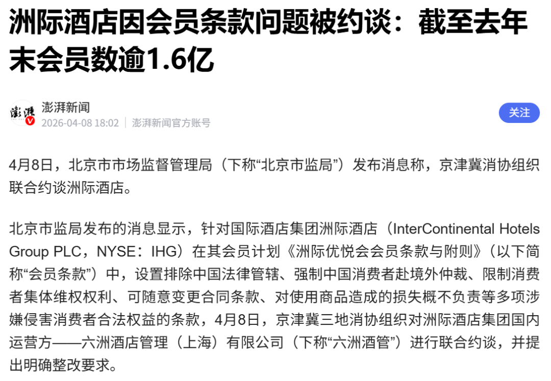 根据帅帅整理的消息,下架最大的可能性是因为京津冀消协组织联合约谈洲际酒店,对其在会员计划《洲际优悦会会员条款与附则》中的一些不合理之处进行约谈并提出整改要求。以下引用“澎湃新闻”的部分内容: