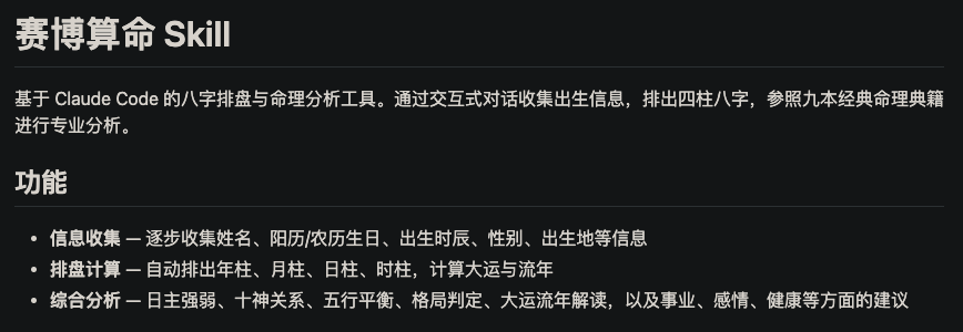 3、文章里提到了一些玄学类的.SKILL,比如“赛博算命”。你觉得AI在传统文化领域有哪些应用前景?