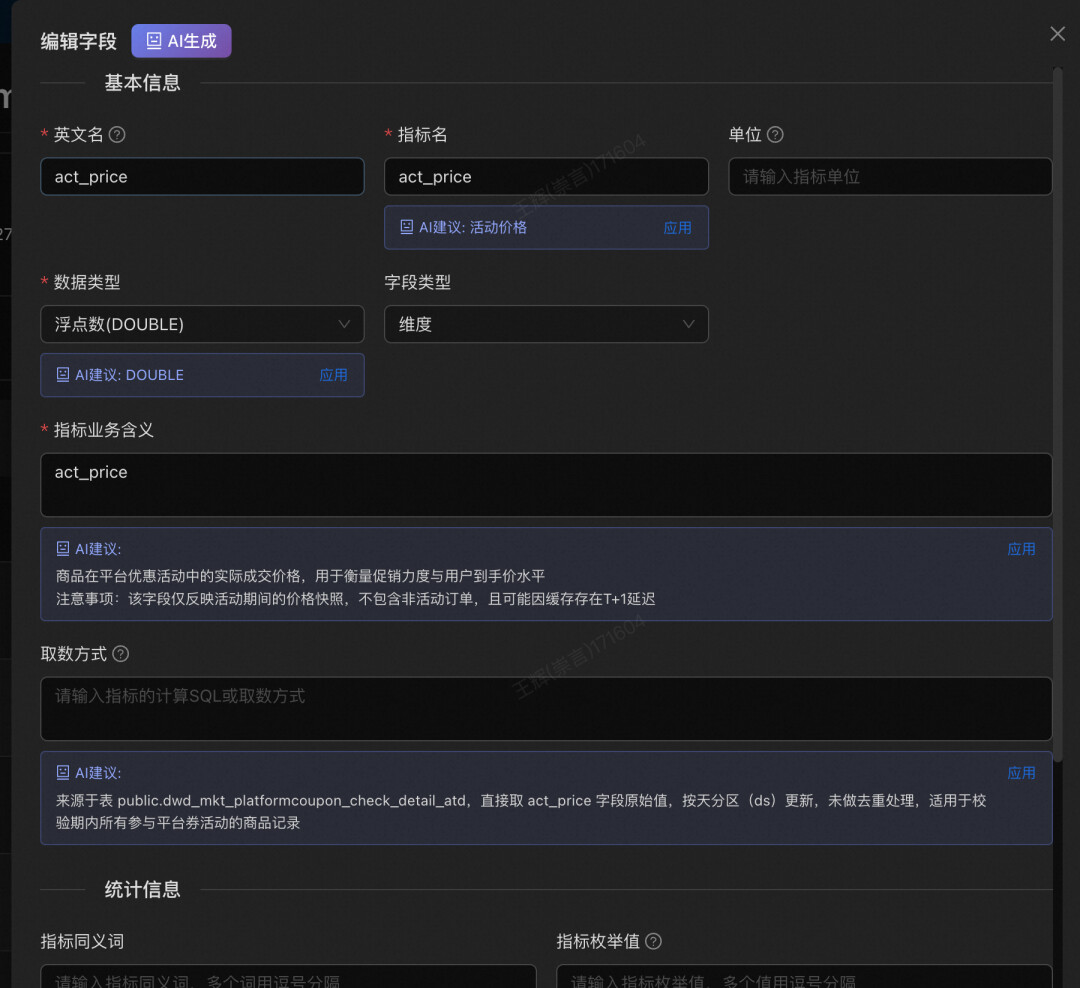 元数据AI代理评审:当新增或修改元数据(如定义一个新的“价格口径”字段)时,让7*24小时的AI助手帮你审核