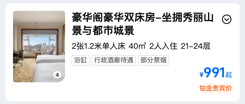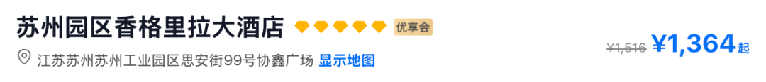 苏州园区香格里拉,日历房基本都是千元起步,套餐周五不加价,对比日历房5-7折。