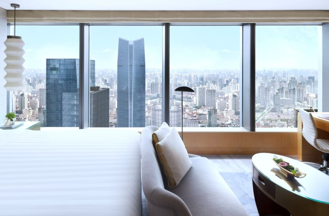 酒店位于城市地标静安嘉里中心之上,所有房间都在30层以上,东向正对陆家嘴三件套,西望原法租界,下楼就是嘉里中心,购物、餐饮、地铁兼备。
