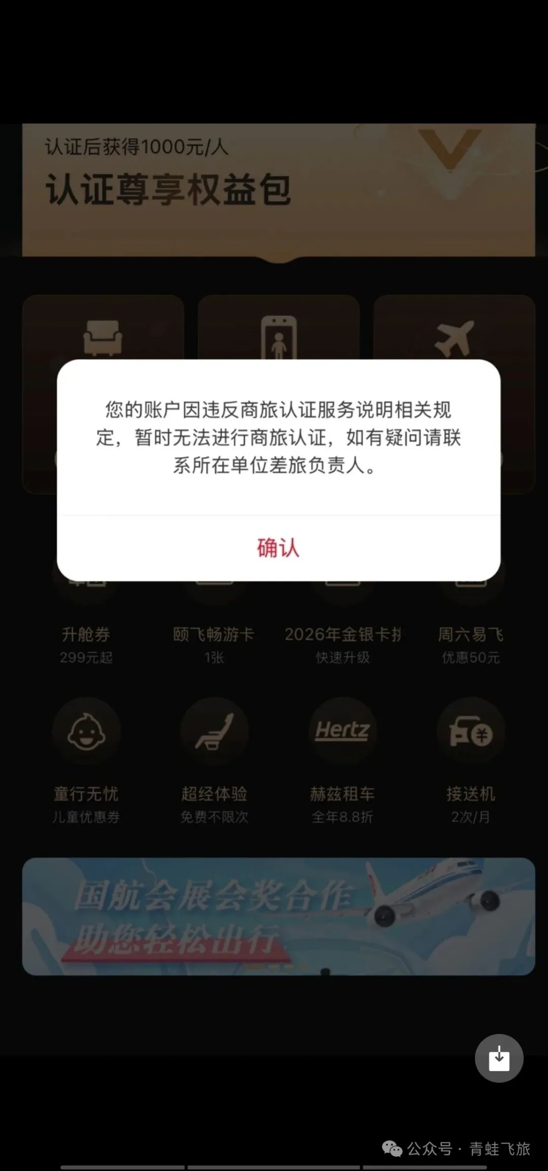 可能是商旅国航商旅权益越来越好的原因,比如最近上了接送机升舱券,所以也开始严查不合格的商旅账户,如果准备买或者用朋友的小蛙劝大家慎重,如果已经买了的,很可能逃不过封号的命运。