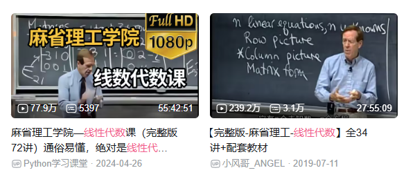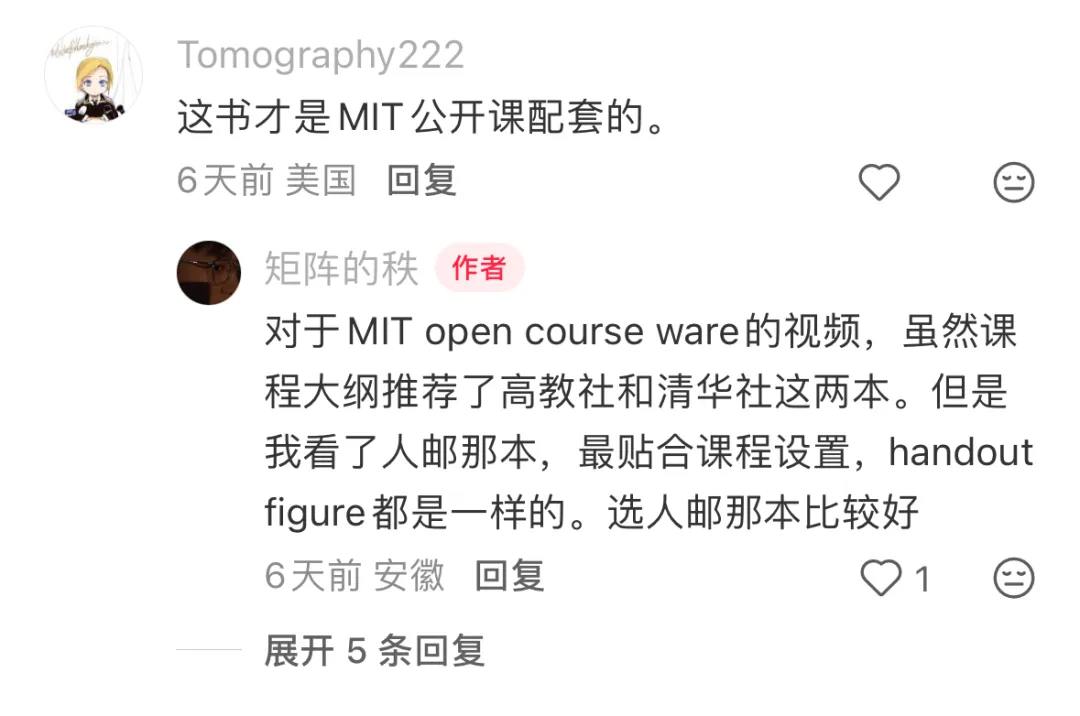 而读者比较感兴趣的B站上累计有五百多万播放的MIT线性代数视频的配套教材到底是哪一本,也有粉丝给出了解答。