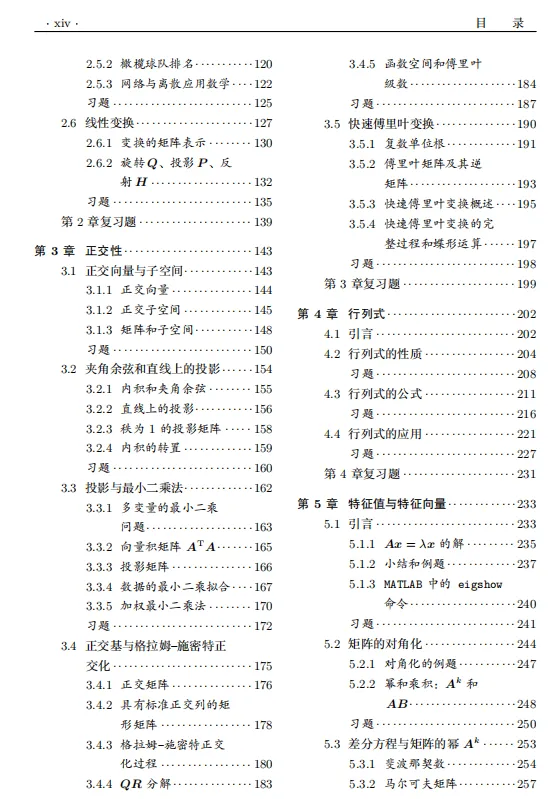 此外,本书在编排上的另一大特点是,提早引入线性变换这一教学难点,并不拘一格地将其融入到各个主题中:先随着矩阵一起,介绍相对容易接受的伸缩、旋转、反射、投影,而把更一般的线性变换(特别是相似变换)放到后面。这符合“从特殊到一般”“从易到难”的原则和认知规律。